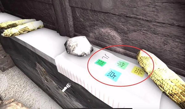 3、石匠的尸体:上面挂着肉,旁边放着麻包,石匠已经死去。