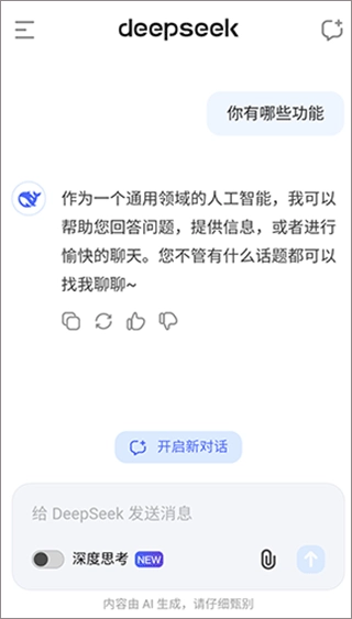 DeepSeek聊天机器人堪称一款极为出色的人工智能软件,它为用户配备了强大的人工智能模型,拥有海量的数据库。在DeepSeek里,用户能够提出形形色色的问题,这款软件会借助大数据模型,为用户给出精准的答案。感兴趣的朋友们,赶紧来下载DeepSeek聊天机器人体验一番吧。